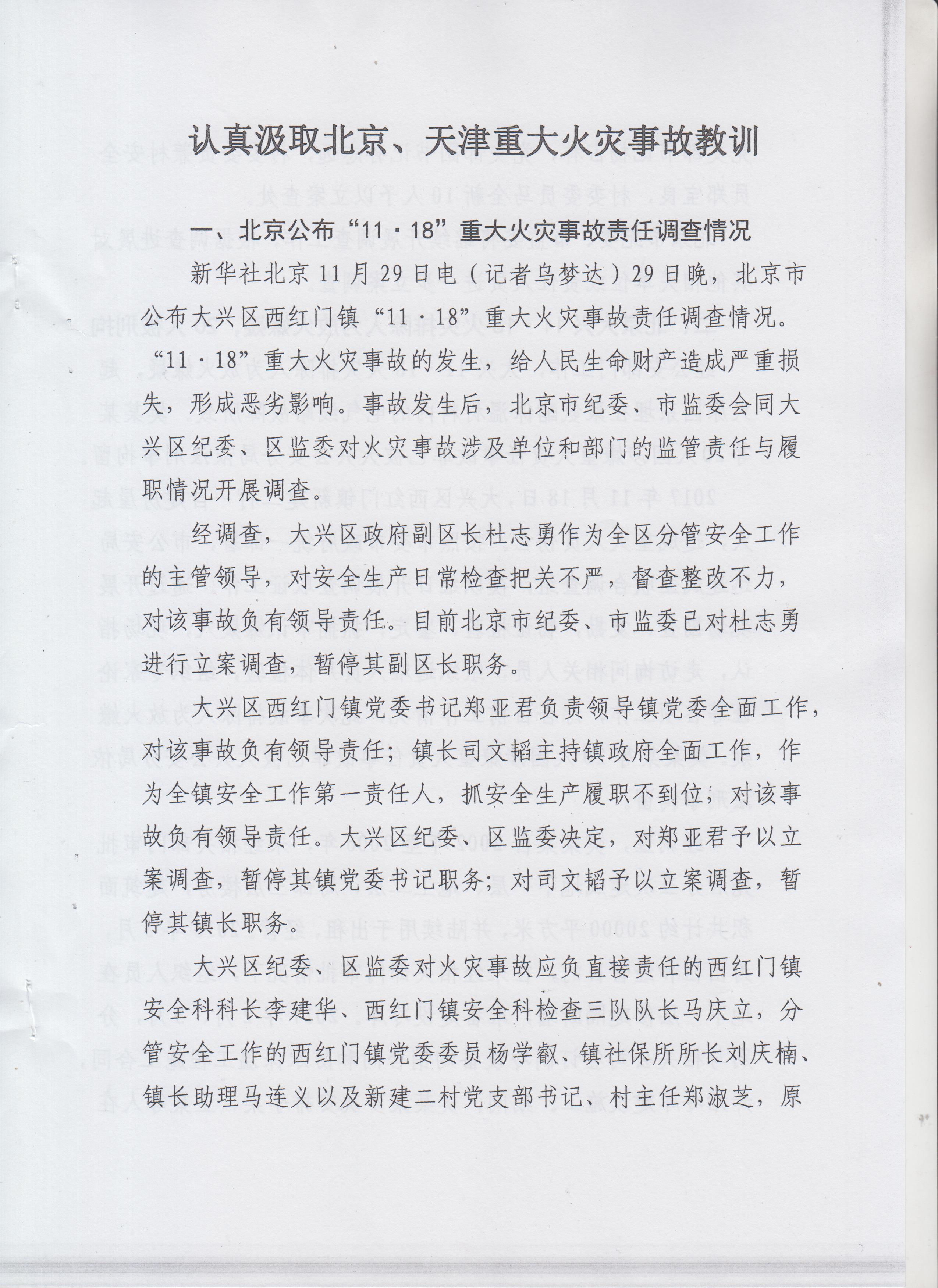 关于转发豫安委办明电【2017】49号文件、郑安监管【2017】187号文件、郑安委办【2017】98号文件、郑政阅【2017】42号、《认真汲取北京、天津重大火灾事故教训》的通知