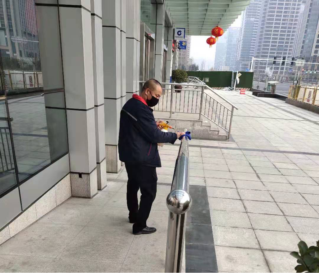 值班人员积极响应,从第一时间的封闭管理、每日巡查,同时,所有物业员工上岗前必须先检测体温,确保每一位服务人员都是健康服务。为了防止微时代和正岩大厦写字楼受病毒的侵袭,悠远物业公司升级防控对写字楼实施进出管控:不仅关闭部分进出通道,限制外来人员的进入,同时对每一个进出写字楼的人员进行信息登记,监测体温,做到早发现、早隔离、早治疗,把业主的生命安全与身体健康放在首位;同时,使用含酒精消毒液、84消毒液等消毒剂对楼道、电梯、走廊等公共区域进行定时、定点消毒,并对垃圾中转站等卫生死角进行重点清洁和消杀。