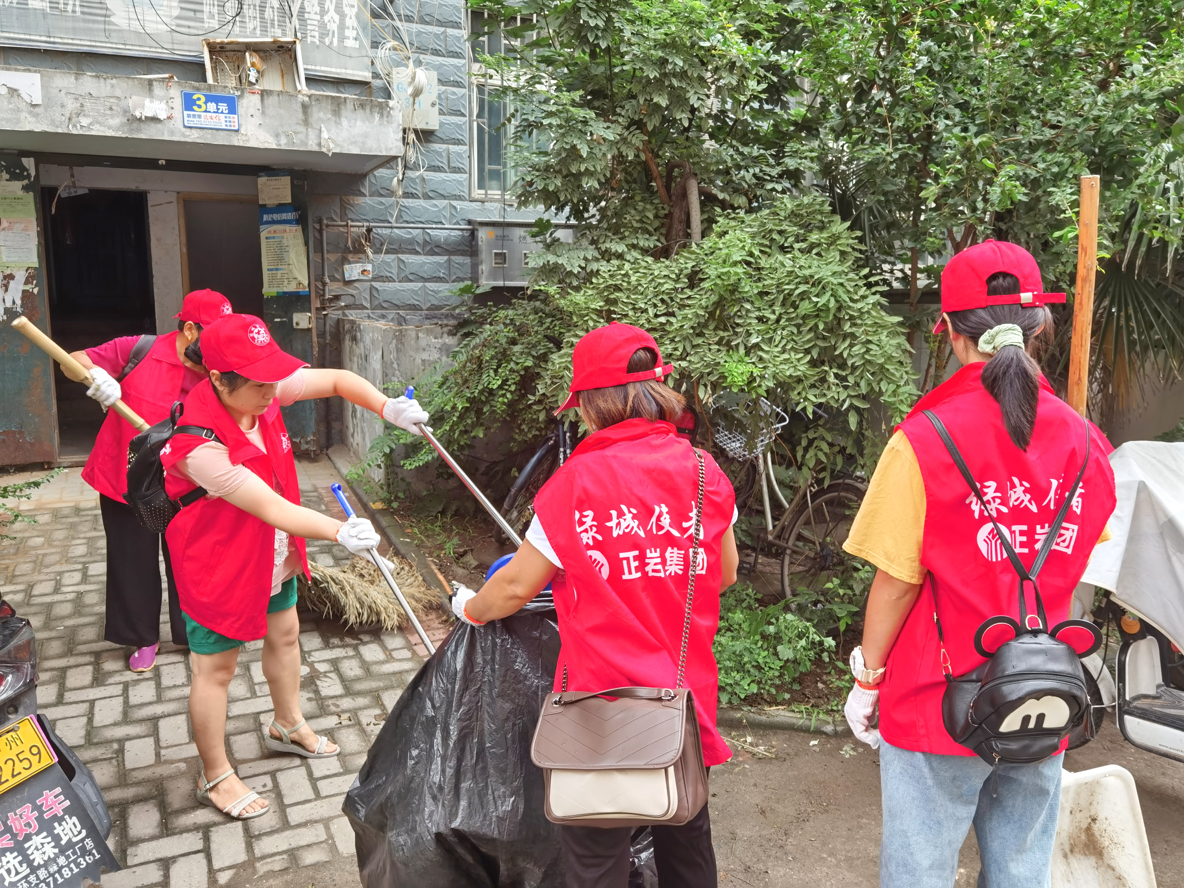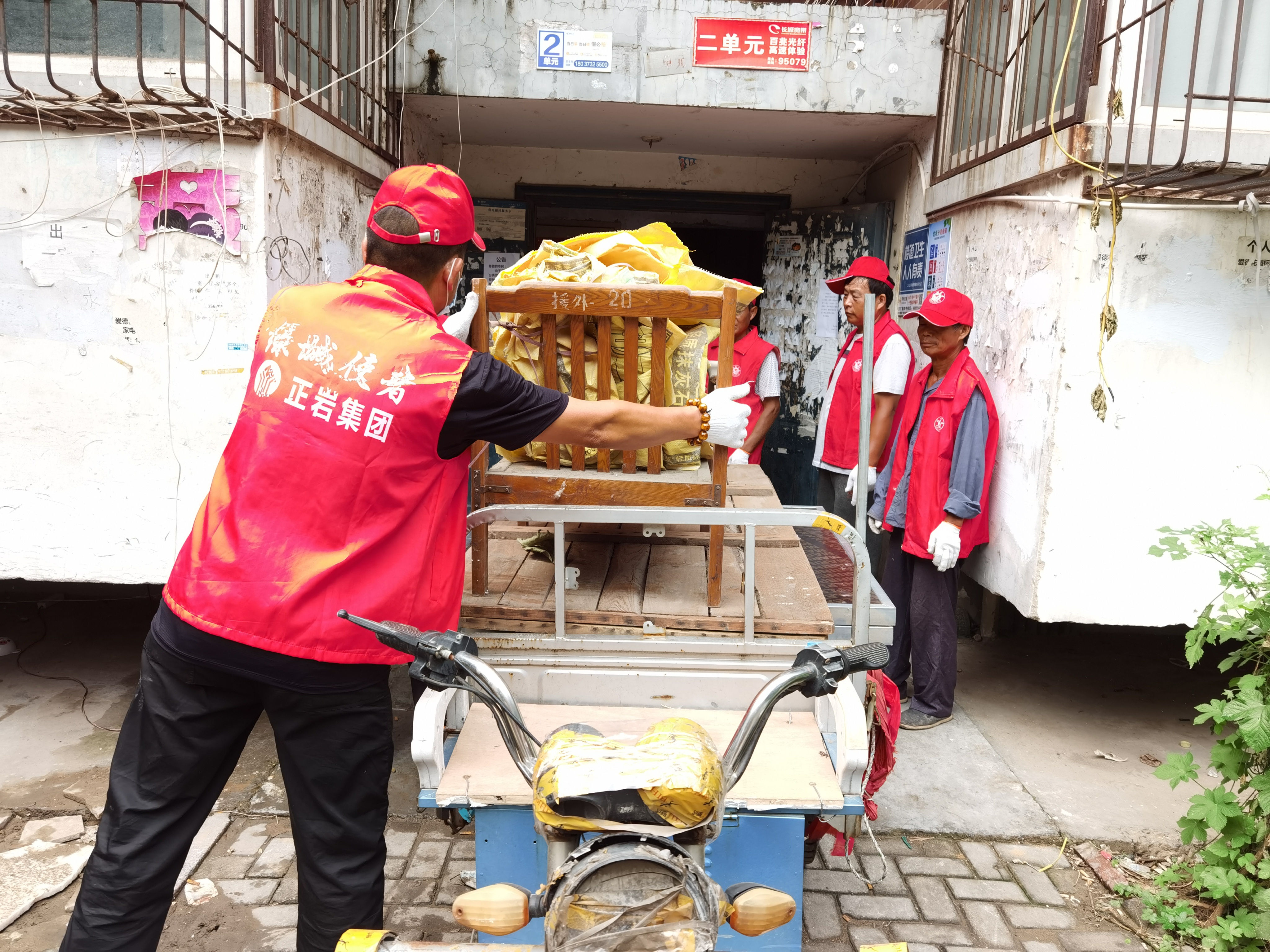 上午九点开始,正岩集团志愿者帮助西彩社区的无主管楼院清理老旧社区改造过程中产生的垃圾,小区道路、楼院的零碎垃圾进行清洁以及对小区内非法张贴的小广告进行清理。